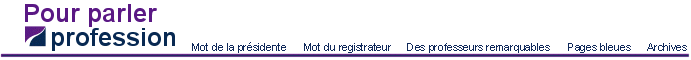 Mot de la présidente  |  Mot du registrateur  |  Des professeurs remarquables  |  Pages bleues Échos de la profession  |  Lu, vu, entendu  |  Calendrier  |  Cyberespace  |  Questions fréquentes  |  Courrier des lecteurs Ordre des enseignantes et des enseignants de l'Ontario 121, rue Bloor Est, Toronto ON M4W 3M5 Téléphone : 416-961-8800 Télécopieur : 416-961-8822 Sans frais en Ontario : 1-888-534-2222 www.oct.ca revue@oct.ca |