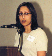 Teacher Nita Singh of D. A. Morrison Jr. High School welcomes participants to the OSClub showcase, a joint project of the Ontario Science Centre, the Toronto District School Board and the Lucent Technologies Foundation held to present the work of Ontario science students.