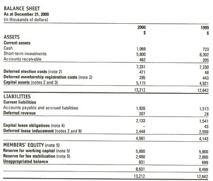 4) Capital lease obligations The College has acquired computer hardware and other office equipment through leasing arrangements. At December 31, 2000, the College had capital lease obligations amounting to $43,000 (1999 - $140,000) at implicit rates of interest ranging from 6.7% to 8%. These capital lease obligations will be met during 2001. 5) Members’ equity and reserve accounts The Council of the College has established two reserves of members’ equity balances. The first is a reserve for working capital, established in 1997 and 1998 in recognition of the need to provide working capital for continuing operations. The balance in the reserve for working capital as at December 31, 2000 is $5,800,000. In 1999, the Council established a reserve for fee stabilization to help moderate the potential for fee increases in the immediate future. The balance in the reserve for fee stabilization as at December 31, 2000 is $2,000,000. 6) Commitments a) Premises lease commitment In September 1996, the College entered into a long-term lease agreement, which expires November 30, 2012. The lease is for office space at 121 Bloor Street East, Toronto. In addition to a rent-free period until November 30, 1997 (valued at $615,300), the College obtained an allowance for leasehold improvements of $2,356,891, which is repayable out of rental payments. In June 2000, the College acquired additional leased space at 121 Bloor Street East for a period to March 31, 2006, which includes a rent-free period valued at $97,000. The estimated annual rental payments, including a provision for operating costs under the lease agreements, are as follows: