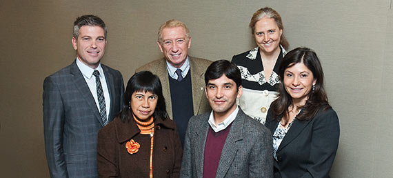 The 2010 Atkinson Scholarship winner, Christopher Carswell (centre), receives congratulations from former College Registrar Joseph Atkinson, OCT, along with College Registrar Michael Salvatori, OCT (far left), Council Chair Liz Papadopoulos, OCT, and Deputy Registrar Joe Jamieson, OCT (far right).